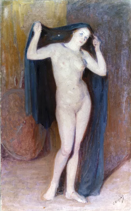 Obra de formato rectangular, horizontal. Composición en base a paisaje...