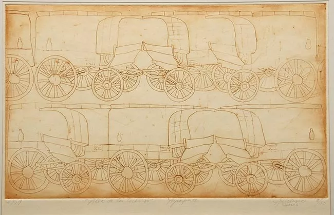 Obra de formato rectangular, orientación vertical. Aguafuerte blanco y...