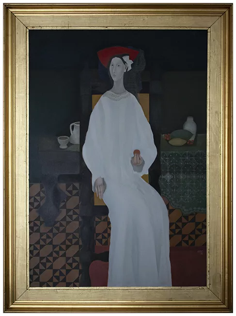 Obra de formato rectangular, vertical. Composición en base a retrato d...