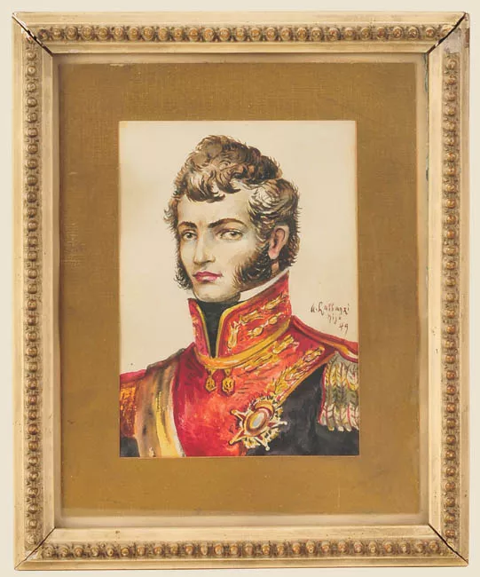 Obra inscrita en formato rectangular, representa una figura masculina ...