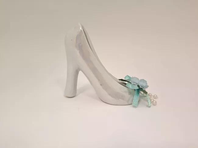 Miniatura decorativa que representa un calzado de color tornasol. El d...