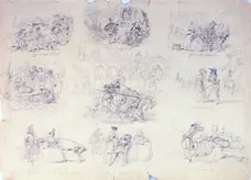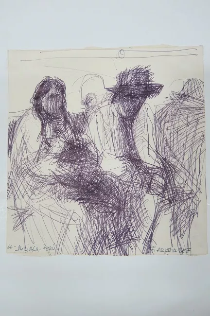 Obra visual de formato rectangular y disposición vertical. Dibujo mono...