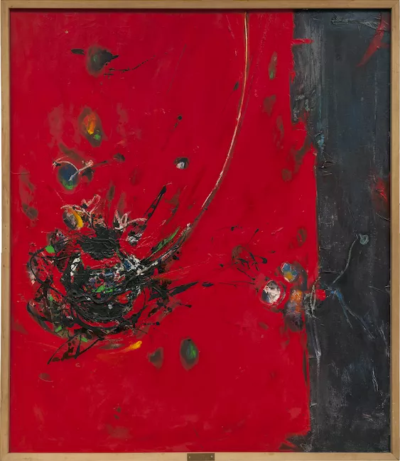 Obra de formto rectangular, vertical. Composición en base a manchas de...