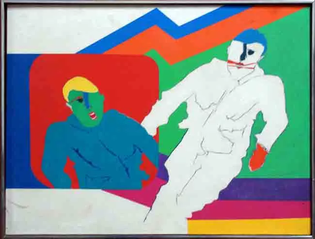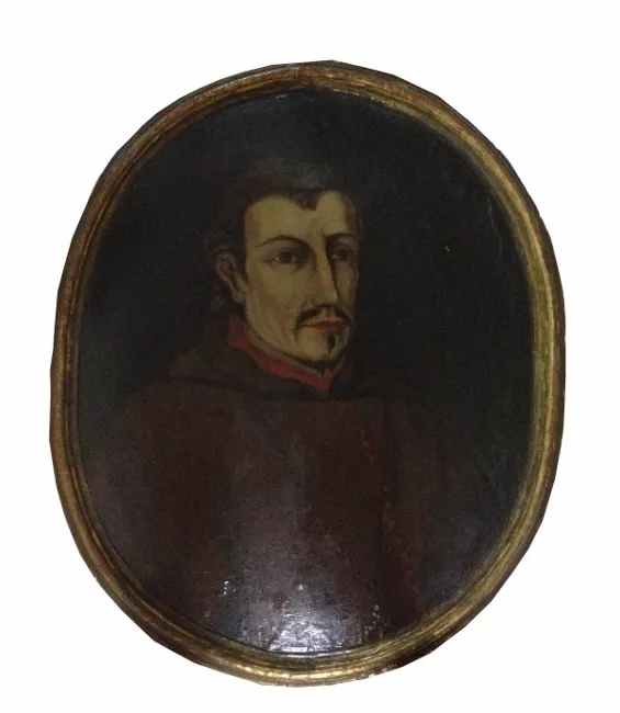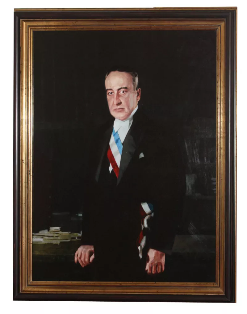 Obra de formato rectangular, vertical. Composición en base a busto de ...