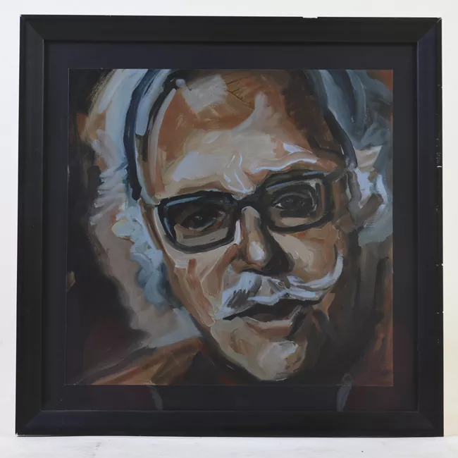 Pintura en formato cuadrado que representa un retrato de una persona c...