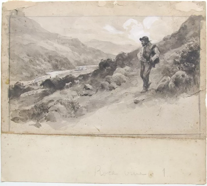 Obra de formato rectangular con marco, cuya composición se basa en una...