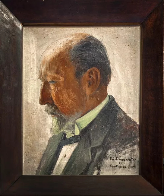 Obra de formato rectangular en orientación horizontal. Pintura figurativa, policromática, que representa una pintura de género. Se observan, en primer plano tres mujeres; a la izquierda una pequeña niña de melena, apoya su brazo sobre las faldas de una mujer mayor, ésta abraza a una bebé, de espaldas, mientras sonríe hacia donde se encuentran los espectadores y las espectadoras. La señora, de pañuelo blanco sobre la cabeza, usa un traje completo negro y tiene una expresión de jovialidad aun cuando su rostro y manos develan sus años y vejez. Al costado de ella una mesa con flores, jarro y frutos. Al fondo un paisaje atardeciendo.