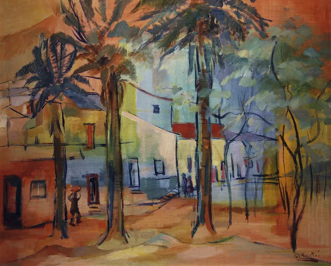 Obra de formato rectangular. Composición en base a paisaje compuesto p...