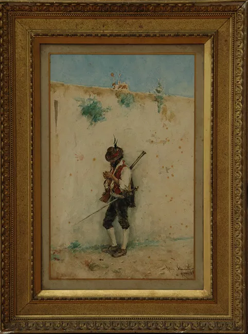 Obra visual de formato elíptico, es un retrato masculino de busto y me...