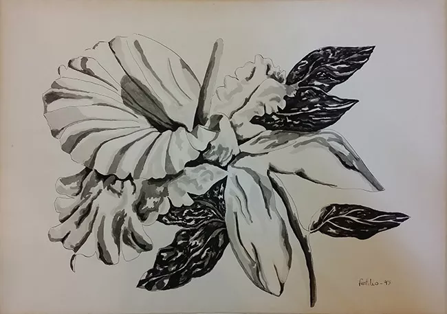 Obra rectangular, orientación horizontal. Imagen blanco y negro de for...
