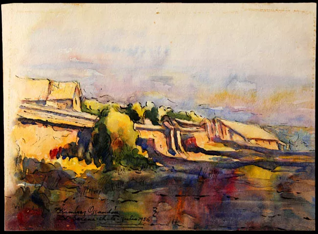 Composición en base a una vista panorámica de un paisaje con casas. Pr...