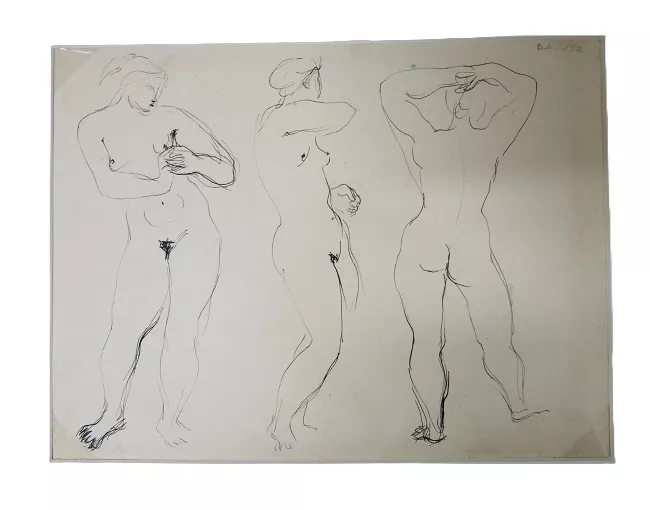 Obra visual de formato rectangular y disposición vertical. Dibujo mono...