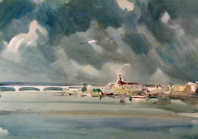 Obra en formato rectangular, horizontal. Composición en base a vista p...