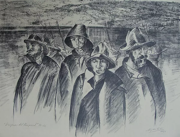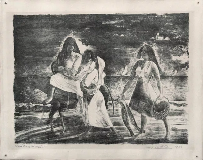 Obra rectangular, orientación horizontal. Imagen blanco y negro. Compo...