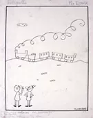 Obra visual de formato rectangular y disposición vertical. Dibujo mono...