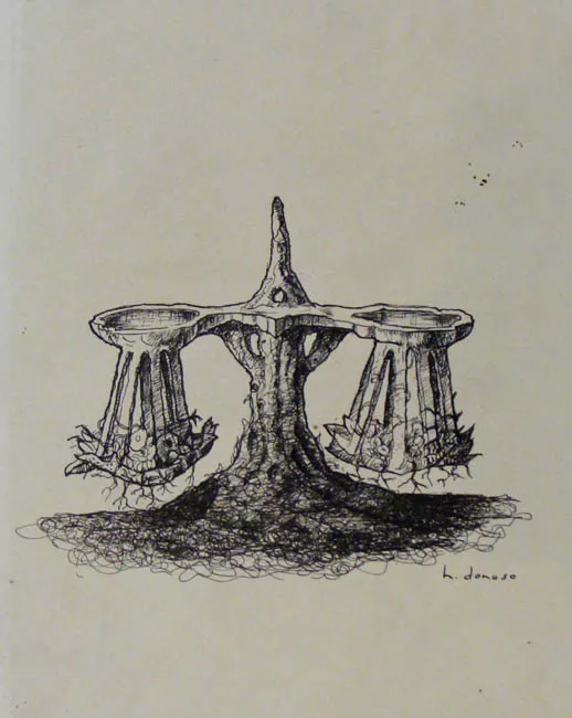 Obra rectangular, orientación vertical. Imagen blanco y negro. Composi...