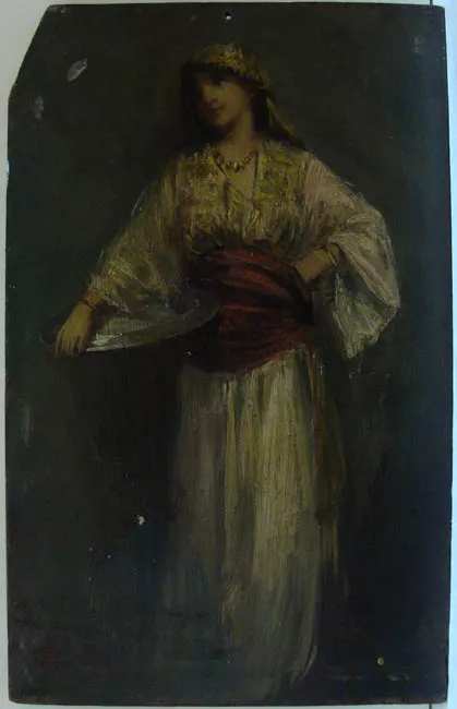 Obra de formato rectangular. Composición en base a figura femenina de ...