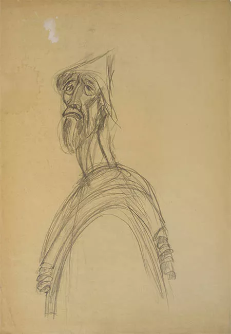 Obra de formato rectangular y orientación vertical. Dibujo figurativo,...