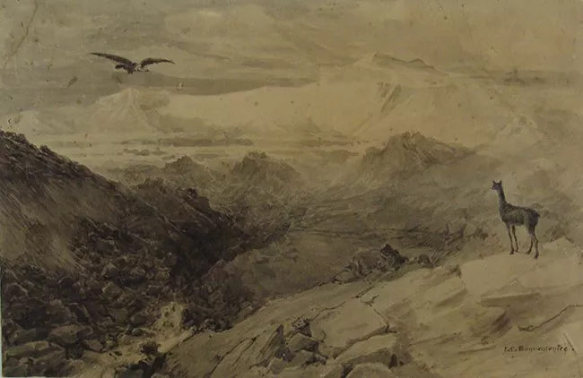 Composición rectangular, orientación horizontal. Paisaje cordillerano ...
