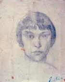 Retrato rectangular en formato vertical. Cabeza de mujer de cabello co...