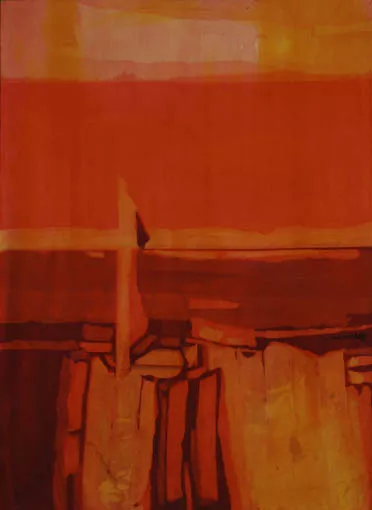 Obra de formato rectangular. Composición en base a un paisaje rural do...