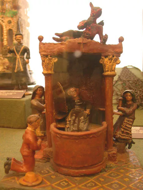 Objeto decorativo, representa una escena de devoción cristiana, corres...