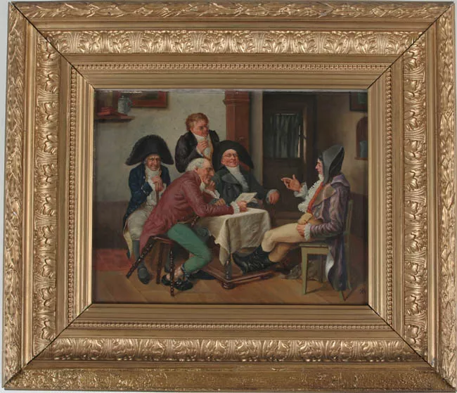 Obra rectangular, orientación horizontal. Escena de campo con la línea...