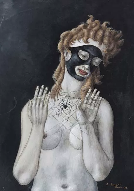 Composición en base a rostro femenino en primer plano. La mujer cubre la parte posterior de su cabeza con un pañuelo.En su rostro sobresalen sus ojos almendrados, cejas delgadas y definidas, labios carnosos y una hendidura en el mentón.