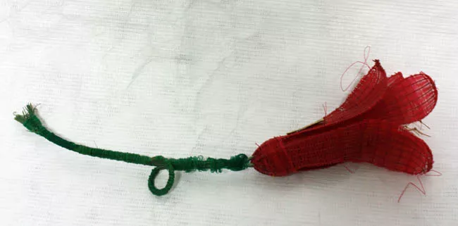 Figura que representa un par de ruedas de madera, con un centro circular y el cuerpo formado por segmentos dispuestos en forma radial, entre el centro y perímetro; este esta formado por una pieza circular y maciza. Está esmaltado de color amarillo.