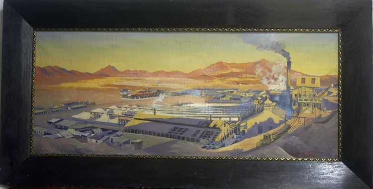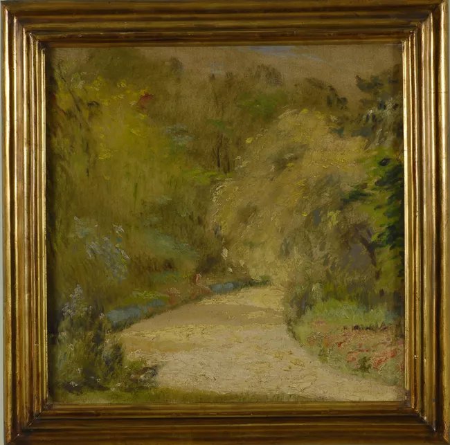 Obra de formato rectangular. Composición en base a paisaje rural. En p...