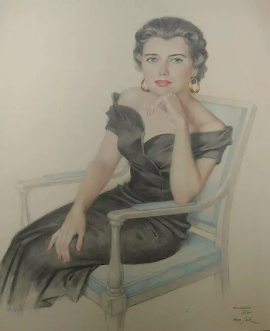 Obra rectangular, orientación vertical. Retrato de figura femenina sen...