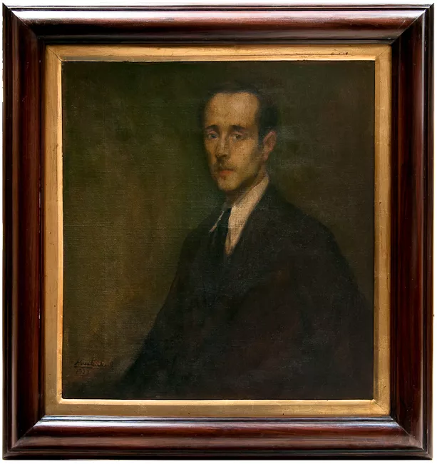 Obra de formato rectangular. Composición en base a retrato masculino d...