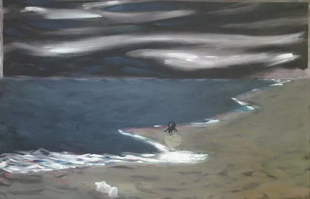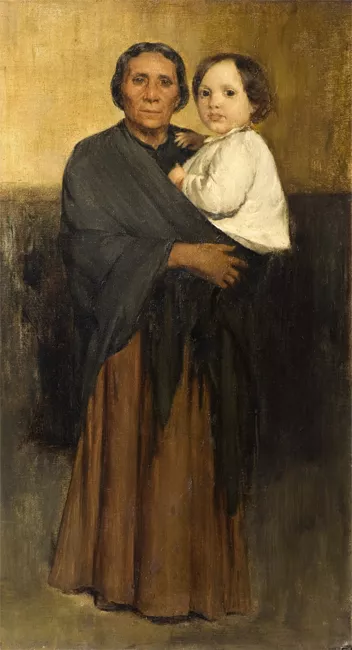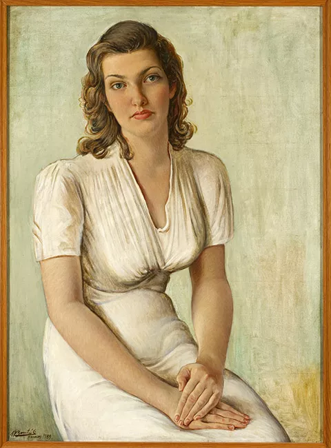 Obra de formato rectangular. Composición en base a figura femenina de ...