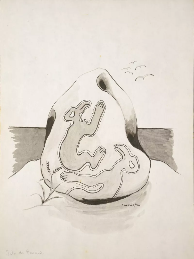 Obra visual de formato rectangular y disposición vertical. Dibujo mono...