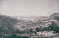 Composición rectangular. Vemos un paisaje que, en primer plano, muestr...