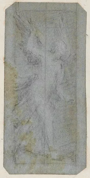 Obra de formato rectangular en orientación vertical. Esbozo de una fig...