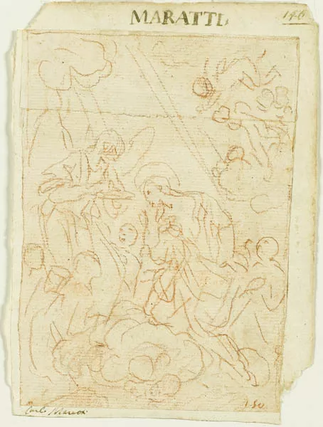 Obra rectangular, orientación vertical. Esbozo de grupo de personajes ...
