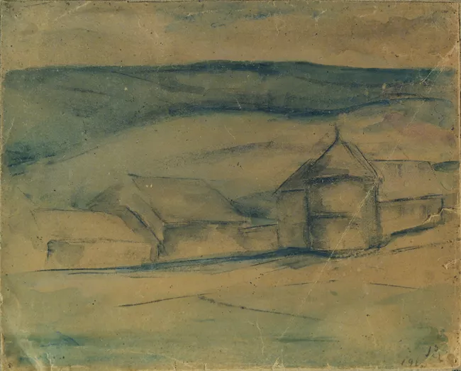 Obra de formato rectangular. Composición en base a una figura masculin...