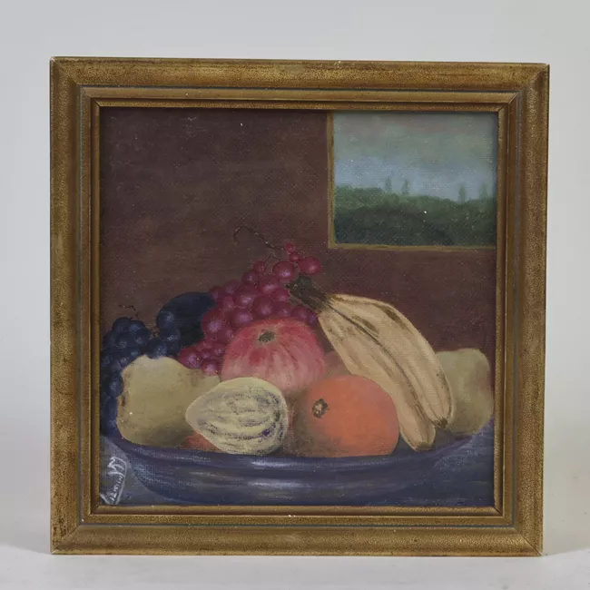 Obra de formato rectangular, vertical. Composición en base a bodegón. ...