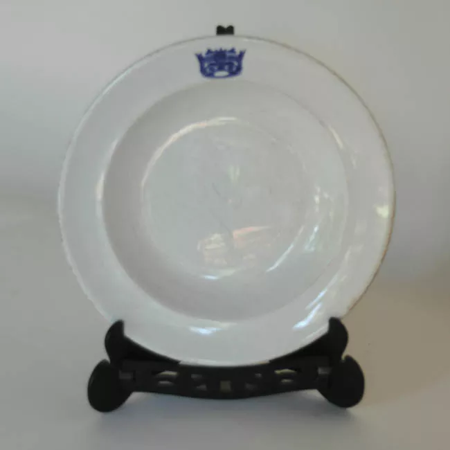 Plato de loza rústica de color blanco, decorado a mano con flores roja...