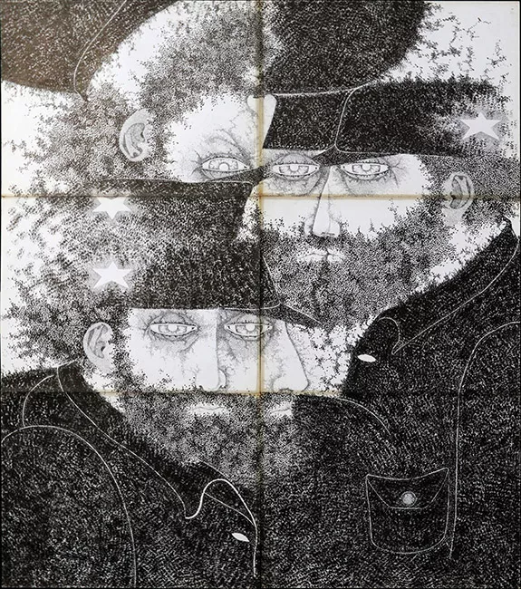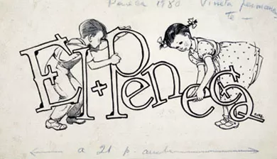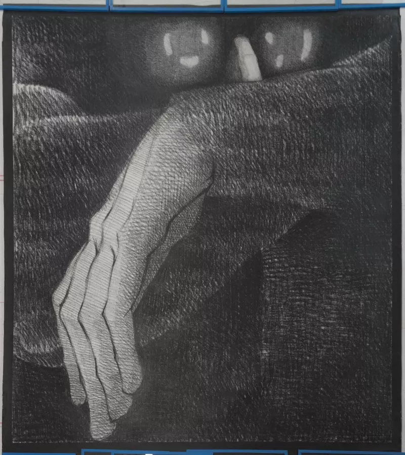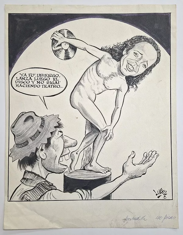 Obra visual de formato rectangular y disposición vertical. Dibujo mono...