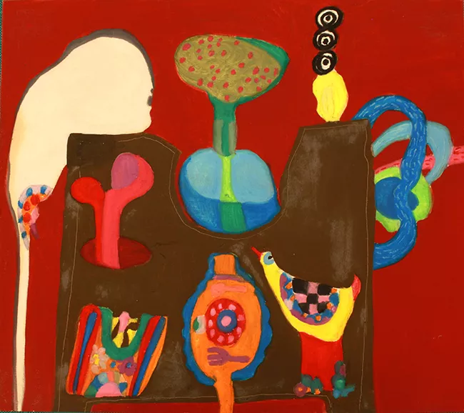 Obra visual en formato rectangular y disposición vertical. Dibujo mono...