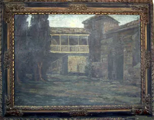 Pintura de un paisaje nocturno compuesto por lo que parece un patio in...