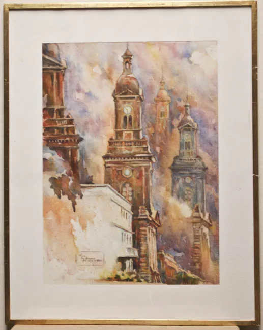 Composición en base a un paisaje urbano. En primer plano izquierdo, pr...