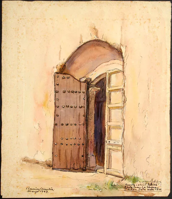 Composición en base a un paisaje rural. En primer plano central, prese...