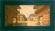 Obra de formato rectangular, disposición horizontal. Composición en base a retrato de busto masculino en entorno urbano. En primer plano, al costado derecho de la obra un hombre mirando de frente al espectador, de tez blanca, ojos de color café oscuro, cabello corto de color café oscuro. En su boca sostiene un cigarrillo de color blanco, viste camisa blanca, chaleco sin mangas negro y sobre su cabeza lleva un sombrero de color negro. De fondo se distinguen edificaciones de tonos blanco, celeste y café oscuro. Delante de ellas se observan figuras humanas de manera poco definida de colores anaranjado, café oscuro y negro. Al costado inferior izquierdo de la obra, una firma.