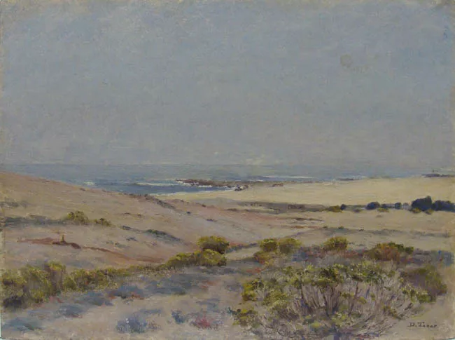 Obra rectangular, orientación horizontal. Paisaje marino. Amplia vista...