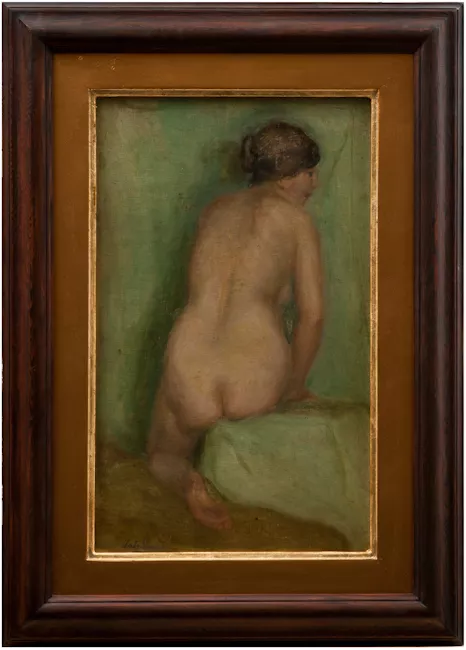 Obra de formato rectangular. Composición en base a desnudo de figura f...