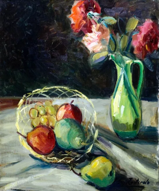 Naturaleza muerta con flores y frutas