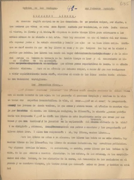 Hojeando libros [manuscrito] Fernando Santiván. 3 hojas ; 29 x 21,5 c...